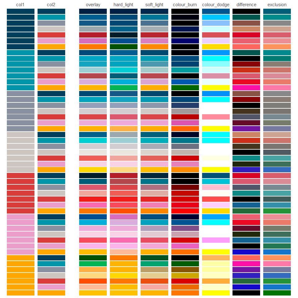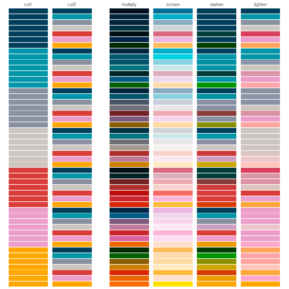 pak::pak("davidhodge931/blends")The objective of blends is to blend colour palettes using blend modes, such as multiply and screen.