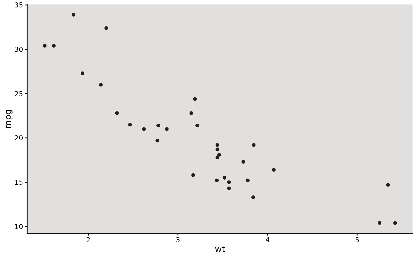 p <- ggplot(mtcars, aes(wt, mpg)) +